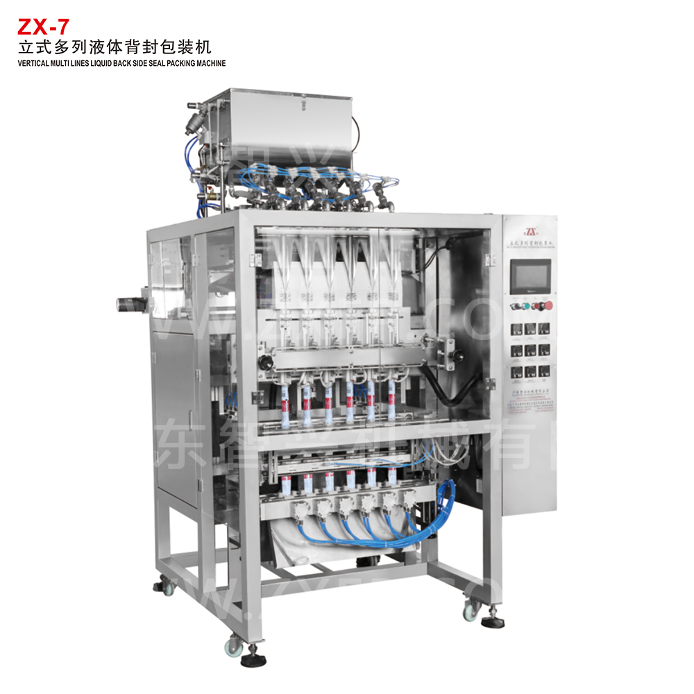 主要性能和結構特點: 立式多列液體背封包裝機是我公司一種高性能的全自動液體 包裝機,具有完成自動送料、計量、制袋、充填、封口、打 印日期及成品輸出等一系列自動功能。適用于果凍,飲料等 液體的包裝。本機采用高精度伺服運膜系統(tǒng)、PLC程序控制、 先進的觸摸式人機介面、光電自動定位跟蹤、數(shù)字式溫控等, 使整機的操作更加簡單、完善,是包裝行業(yè)提高生產效率, 降低勞動強度,提高包裝檔次的******設備。