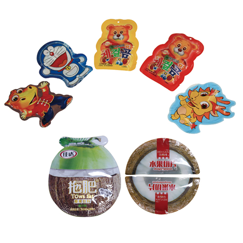 適用范圍:本機能夠制造出獨特的異型包裝袋,適合于食品(糖果、果仁、小餅干等)、飲料(果汁、果凍等)和粉類(雞精)的包裝。